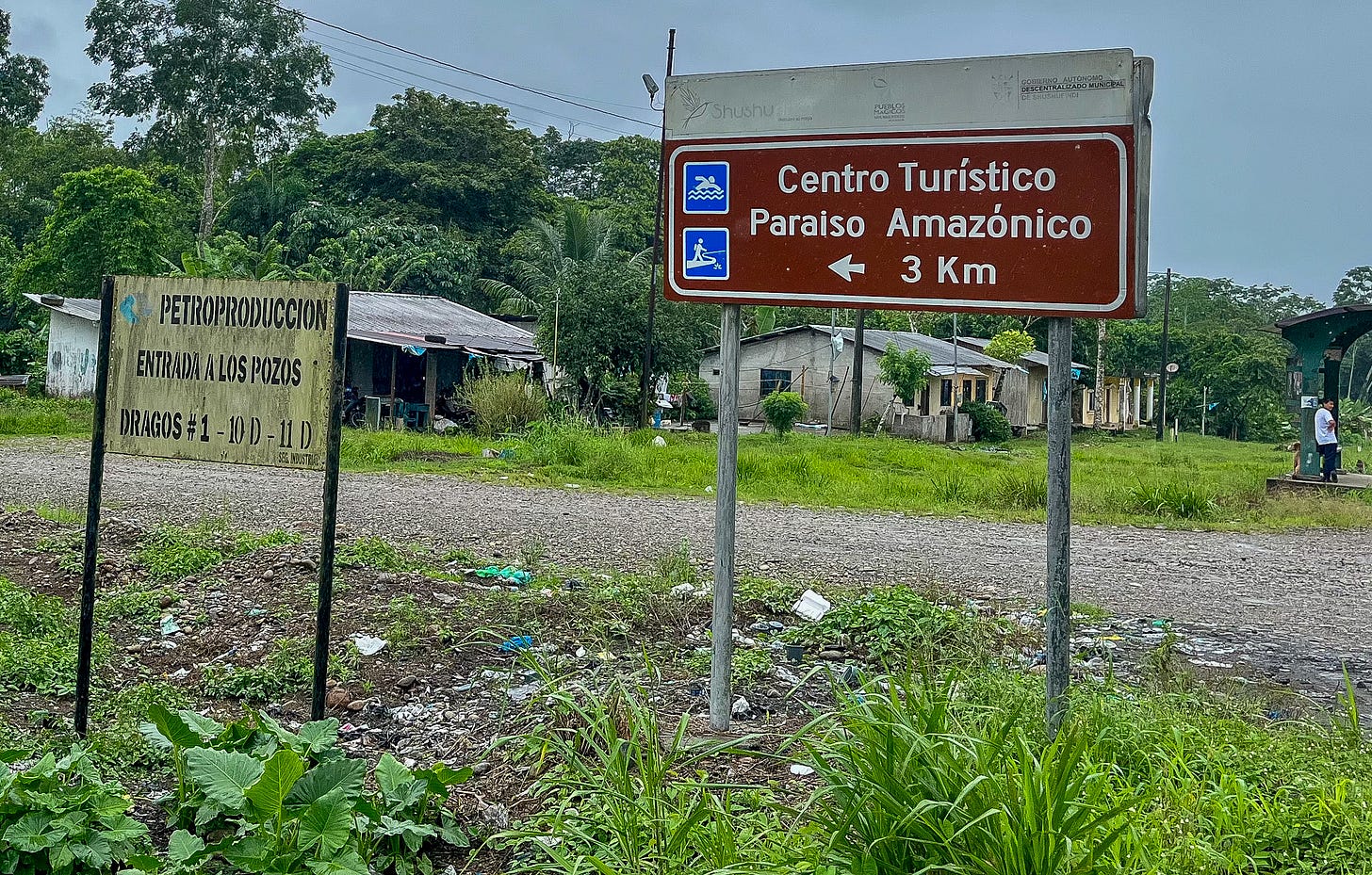 This is the Amazon you don’t see in nature magazines. Yet, signs for tourism destinations hug signs for oil deposits -- the paradox unacknowledged.
