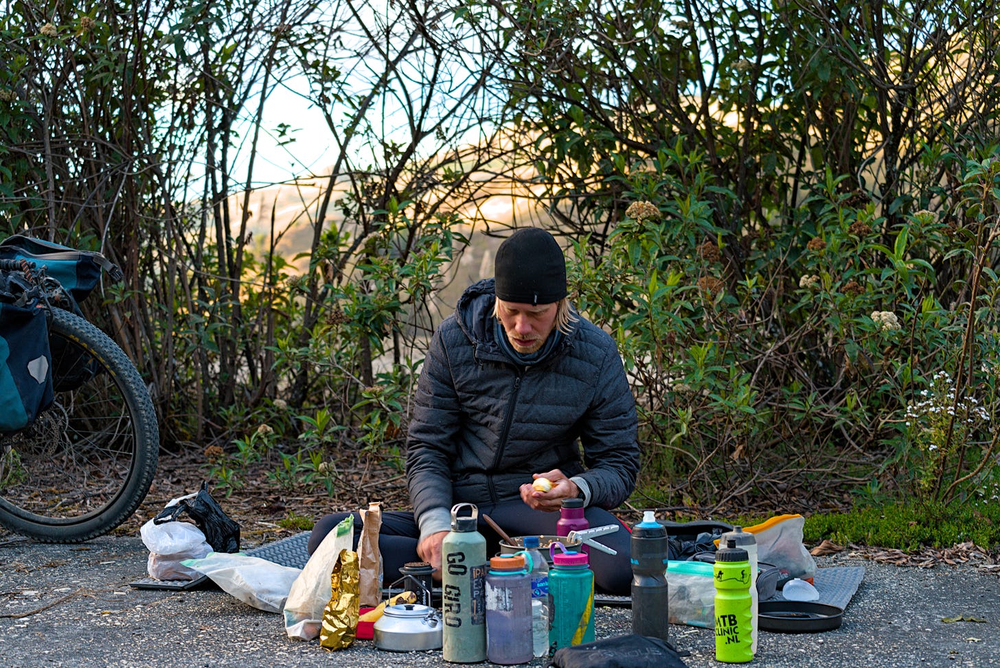 So I’ve adapted the concept for cycle-touring: largely limiting the list of ingredients to those that can be found in each country’s most basic grocery stores (re-supply) and which can be used in recipes possible within the limits of camp cooking.